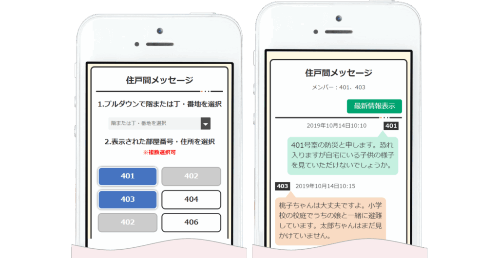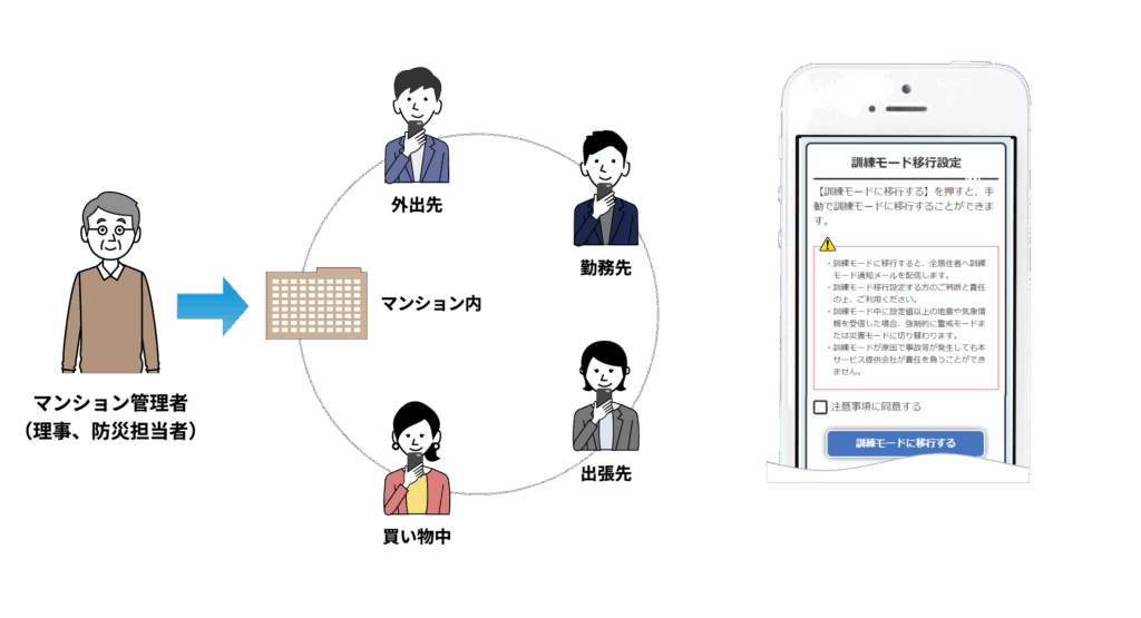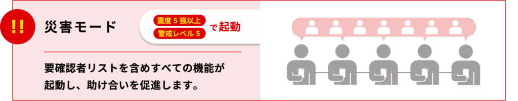 | 安否情報の共有先 | 全居住者※1 | 管理者 | 参加者全員 | 管理者 |